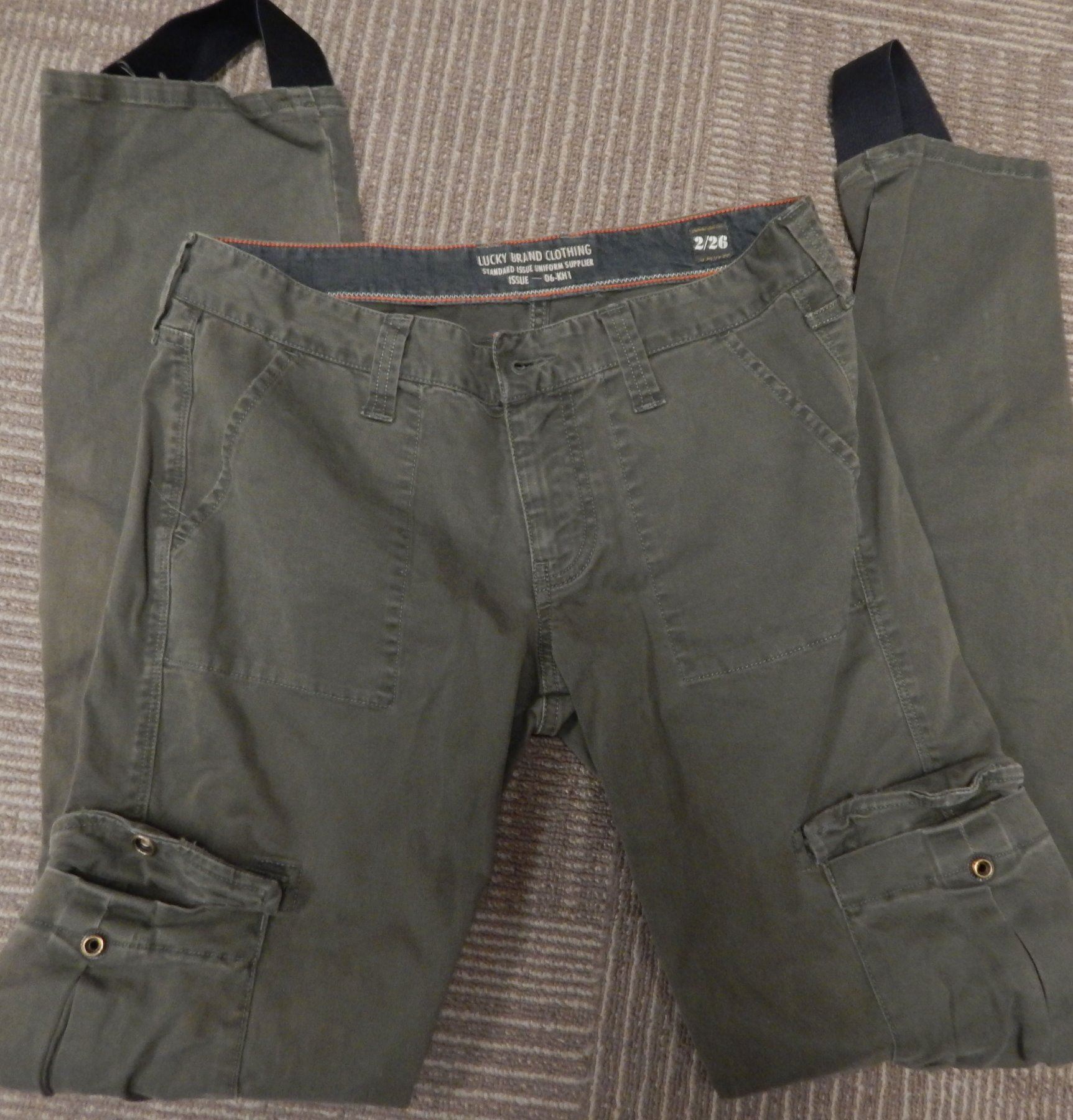 Pair of army green cargo pants screen worn in the hit film franchise The Hunger Games. All items come with certificate of authenticity good for the life of the piece.