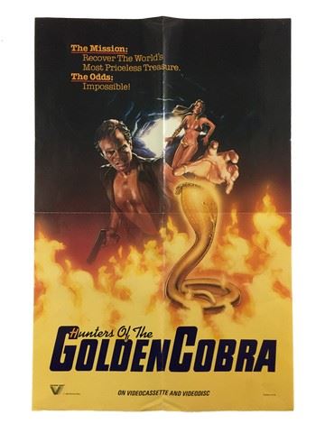 The Hunters of the Golden Cobra (Vestron Video, 1984). One Sheet. Starring: David Warbeck and Almanta Suska. There are fold lines and creases. Very Fine. (24" X 36").