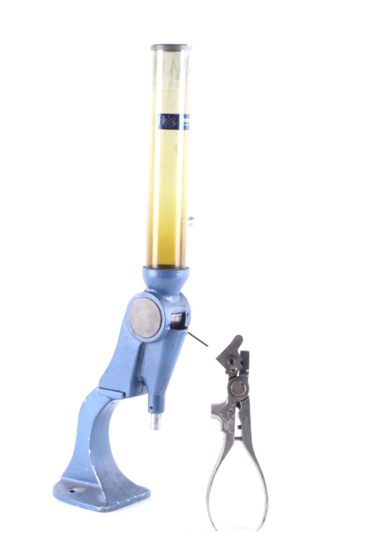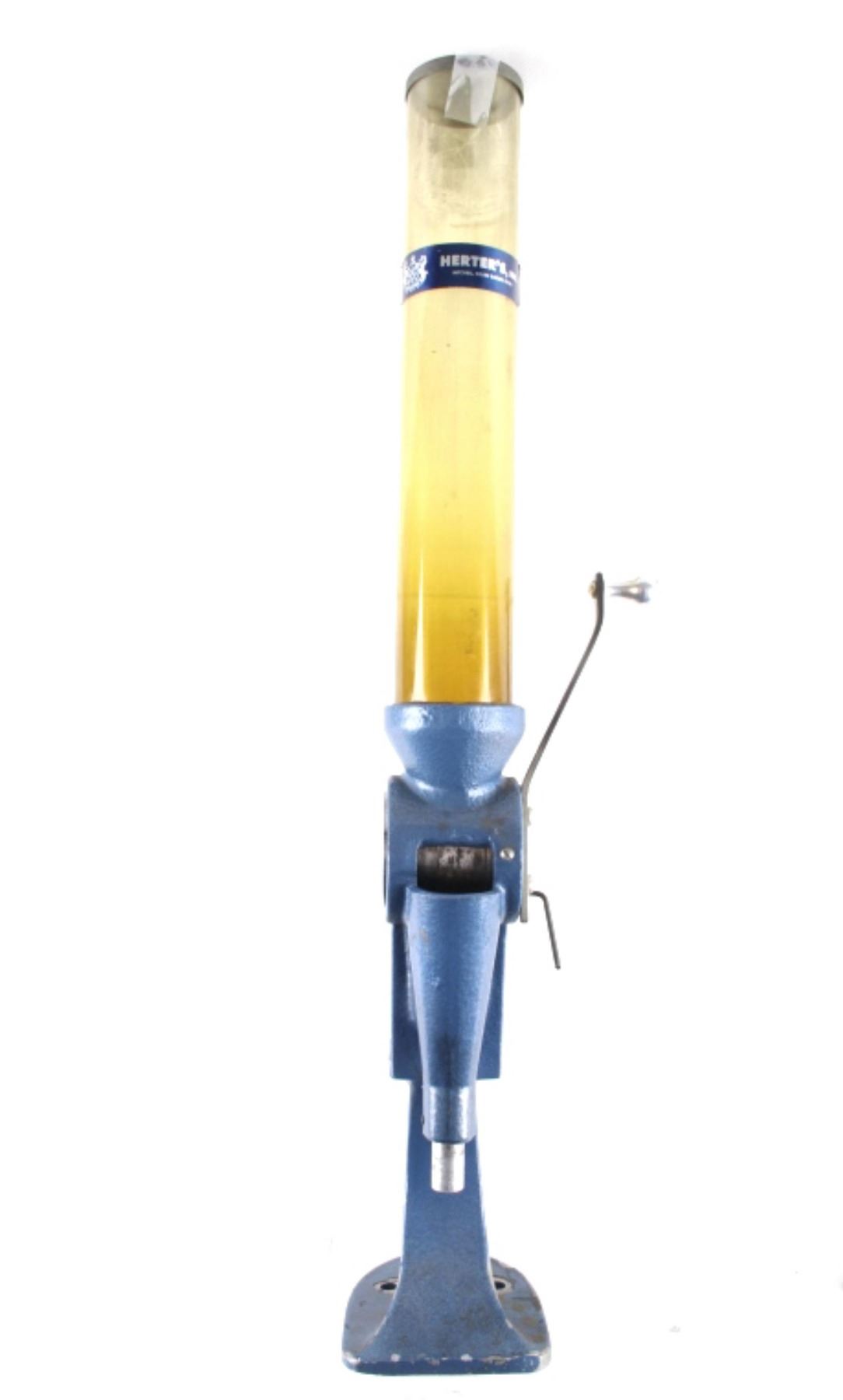 Vintage Herters powder measure with iron stand, made approx. 1970. The Ideal loading tool is in