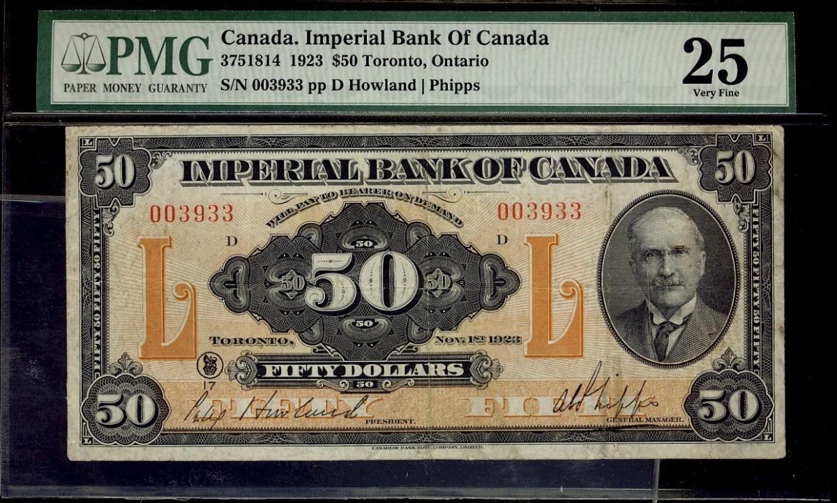 The Imperial Bank of Canada 1923 $50 #003933 CH-375-18-14 PMG VF25.
