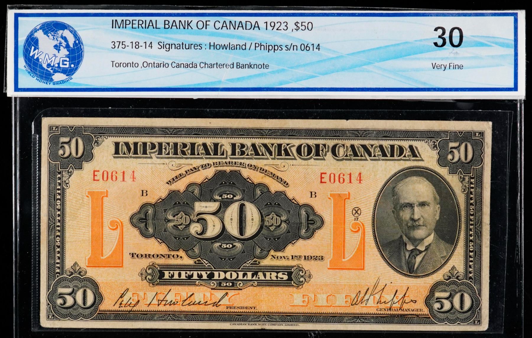 The Imperial Bank of Canada; 1923 $50 CH-375-18-14, WMG Choice Very Fine-30. View and Bid accordingly.