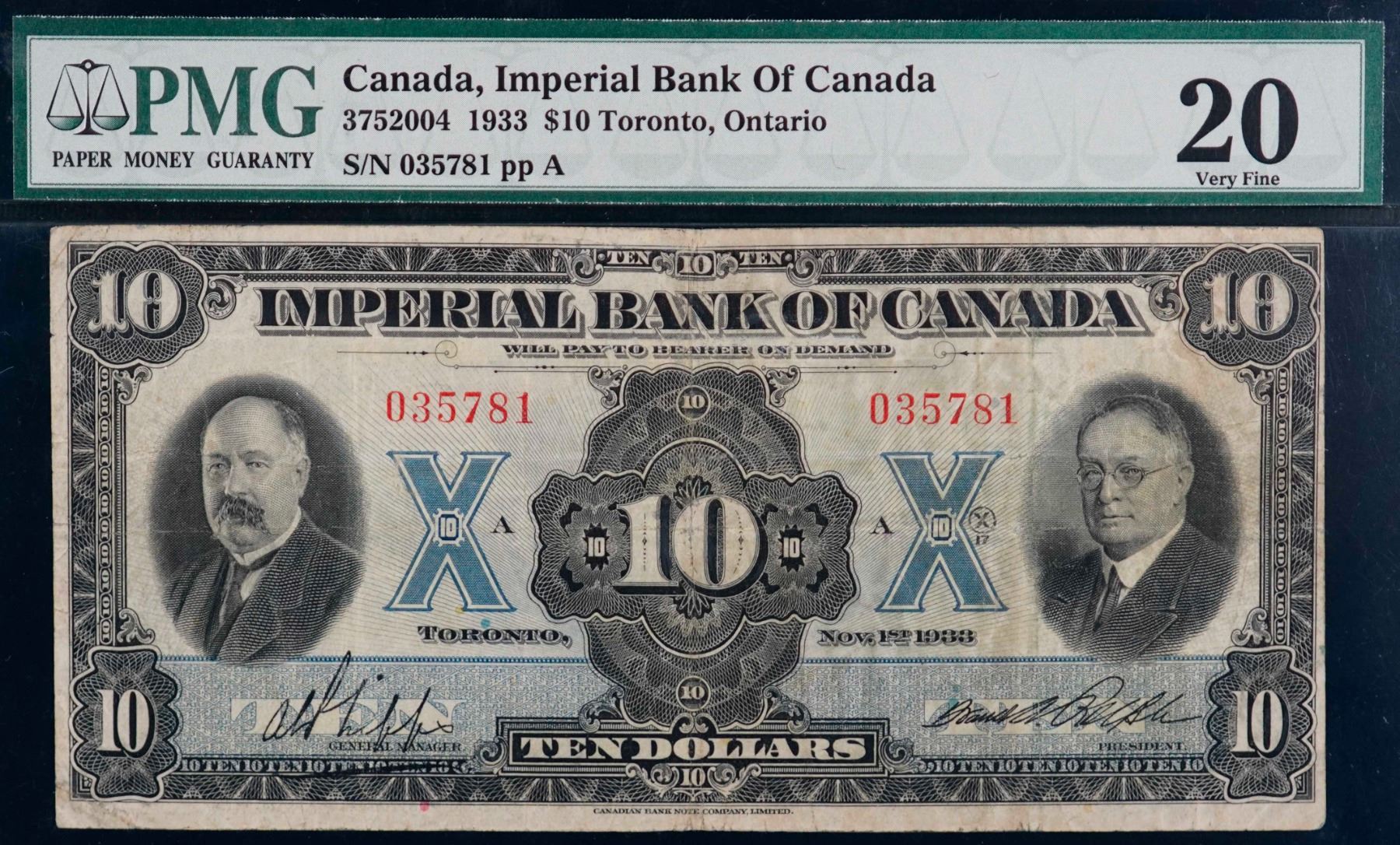 The Imperial Bank of Canada; 1933 $10 #035781 CH-375-20-04, PMG Very Fine-20.