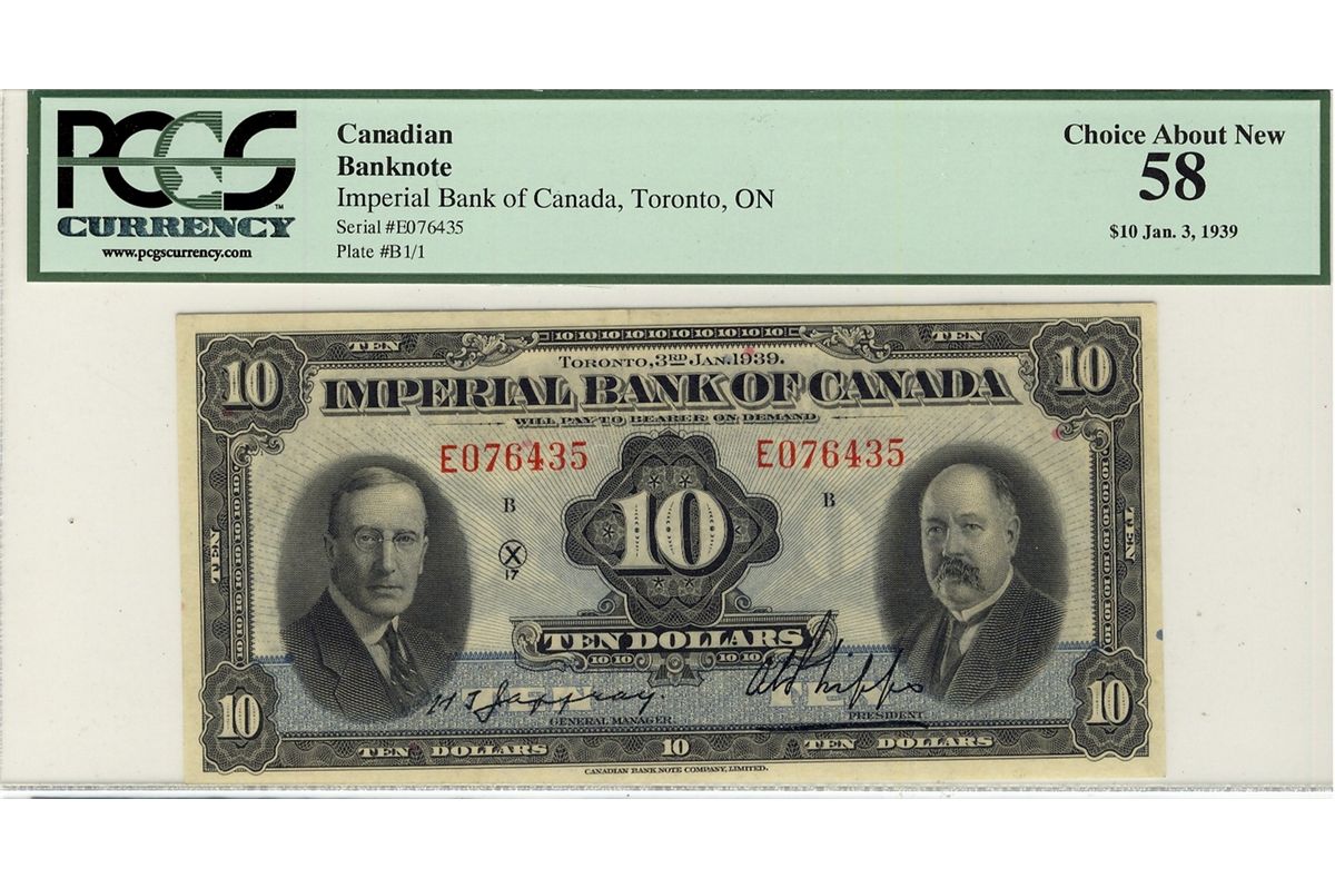 The Imperial Bank of Canada 1939 $10 CH-375-24-04 #E076435 PCGS CH AU58. Looks Uncirculated