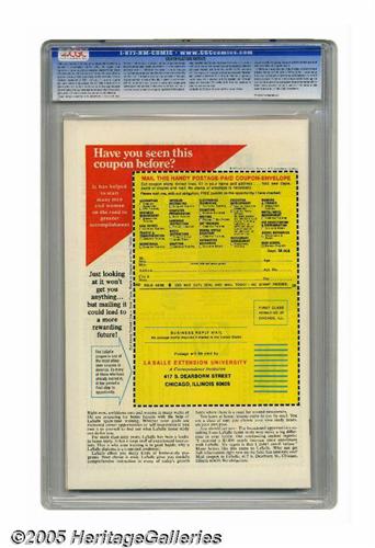 33.Exclusively Internet, CurrencyAuction.com, Amazing Comics Auctions™ and Bullet auctions: THREE (3) DAY RETURN POLICY. All lots (Exception: Third party graded notes are not returnable for any reason whatsoever) paid for within seven days of the auction closing are sold with a three (3) day return privilege. You may return lots under the following conditions: Within three days of receipt of the lot, you must first notify Auctioneer by contacting Customer Service by phone (1-800-872-6467) or e-mail (Bid@HeritageGalleries. com), and immediately mail the lot(s) fully insured to the attention of Returns, Heritage, 3500 Maple Avenue, 17th Floor, Dallas TX 75219-3941. Lots must be housed intact in their original holder and condition. You are responsible for the insured, safe delivery of any lots. A non-negotiable return fee of 5% of the purchase price ($10 per lot minimum) will be deducted from the refund for each returned lot or billed directly. Postage and handling fees are not refunded. After the three-day period (from receipt), no items may be returned for any reason. Late remittance for purchases revokes all Return-Restock privileges.