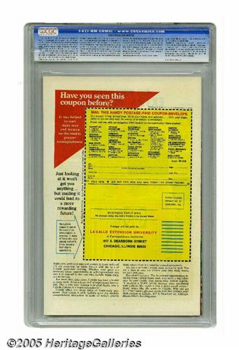 33.Exclusively Internet, CurrencyAuction.com, Amazing Comics Auctions™ and Bullet auctions: THREE (3) DAY RETURN POLICY. All lots (Exception: Third party graded notes are not returnable for any reason whatsoever) paid for within seven days of the auction closing are sold with a three (3) day return privilege. You may return lots under the following conditions: Within three days of receipt of the lot, you must first notify Auctioneer by contacting Customer Service by phone (1-800-872-6467) or e-mail (Bid@HeritageGalleries. com), and immediately mail the lot(s) fully insured to the attention of Returns, Heritage, 3500 Maple Avenue, 17th Floor, Dallas TX 75219-3941. Lots must be housed intact in their original holder and condition. You are responsible for the insured, safe delivery of any lots. A non-negotiable return fee of 5% of the purchase price ($10 per lot minimum) will be deducted from the refund for each returned lot or billed directly. Postage and handling fees are not refunded. After the three-day period (from receipt), no items may be returned for any reason. Late remittance for purchases revokes all Return-Restock privileges.