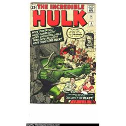 The Incredible Hulk #5 (Marvel, 1963) CGC FN- 5.5 Off-white pages. The original series of Mr. Green is much harder to find in all conditions. This would be a bona fide high-grade copy, with a solid spine, bright colors and pages, sharp cover corners, and straight edges, but a small tape tear on the cover brings this to a price even your little brother can afford. Overstreet 2002 FN 6.0 value = $339. Important notice: We expect to be auctioning lots at the rate of 200-250 per hour. Sometimes eBay Premier live bid software cannot keep up with that pace, so we strongly recommend that you place a realistic proxy bid now as insurance to avoid disappointment. Also please note that all Heritage/CAA lots purchased through eBay Premier carry a 20% Buyer's Premium. Please make sure you read the Terms and Conditions.