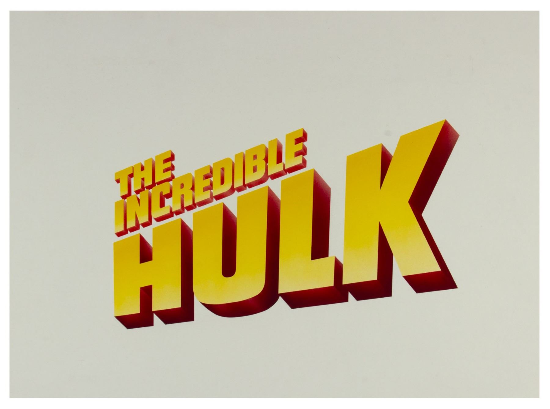 (Universal, 1978) An original hand-painted title for "The Incredible Hulk". This artwork comes from the collection of Bill Wallen who partnered with Thought Factory to create and market collectible posters featuring "The Incredible Hulk" that used this original artwork. Created in airbrush on art board, the title has an image size of 9"x15" on 18"x24" board. The back of the board has the hand-written note: "Universal Studios, Incredible Hulk, Title Treatment, Per Bill Wallen". The condition is very fine with minor wear to the board. The artwork has a clear protective layer hinged over the top.