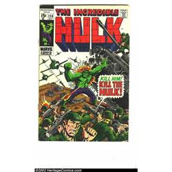 The Incredible Hulk group lot (Marvel, 1968). A great starter run for any Hulk enthusiast, containing most issues of #105-179, #183-200. Average grade on the early issues is FN, later issues VF/NM. Overstreet 2002 value for group = $1,000. Important notice: We expect to be auctioning lots at the rate of 200-250 per hour. Sometimes eBay Premier live bid software cannot keep up with that pace, so we strongly recommend that you place a realistic proxy bid now as insurance to avoid disappointment. Also please note that all Heritage/CAA lots purchased through eBay Premier carry a 20% Buyer's Premium. Please make sure you read the Terms and Conditions.