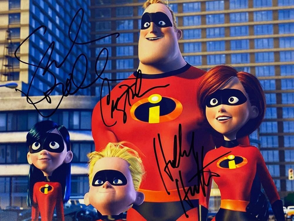 The Incredibles cast facsimile signed movie photo autographed by Craig T. Nelson, Holly Hunter and Sarah Vowell. 8x10 inches. This item is a reprint of an original autograph