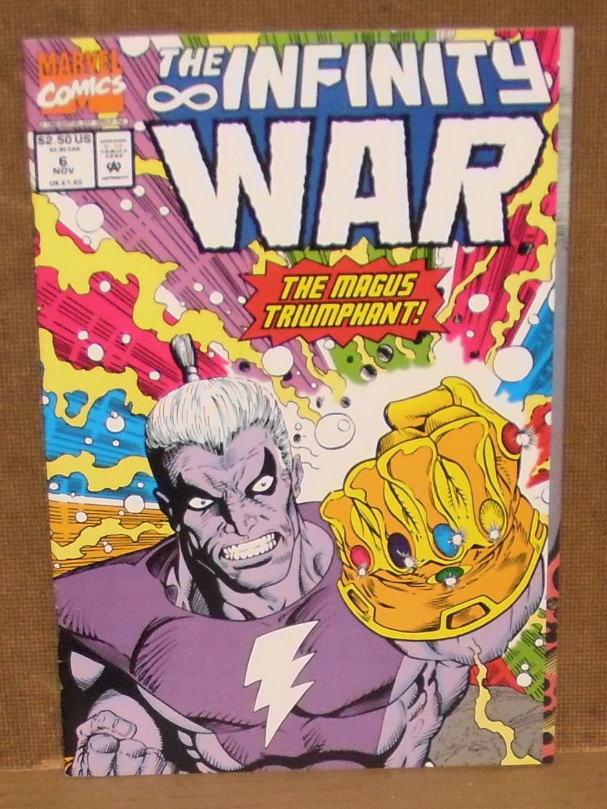 This cover is an 3 pages poster, and this collectible thick comic book Printed in Canada which likely makes it more rare, is volume 1, #6, 1992 Marvel Comics "The Infinity War" as 'The Magus Triumphant!' as is since all pages seem near mint since NOT read yet; for your collection or start one now, or give !