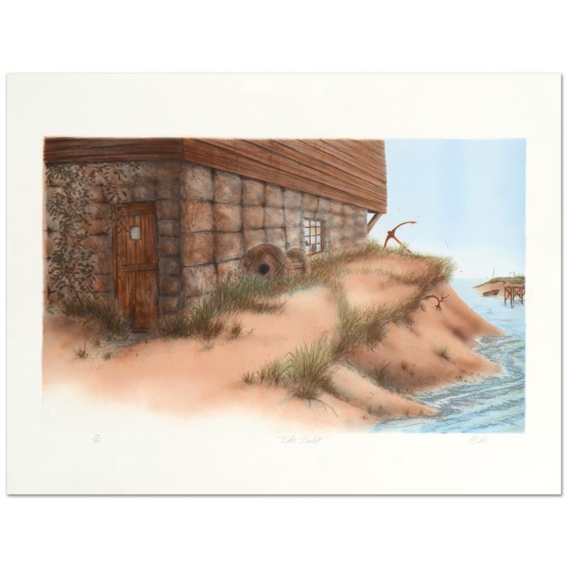 "The Inlet" is a limited edition lithograph on paper by Mike, numbered and hand signed by the artist! Measures approx. 29" x 22" (with border); 25" x 16" (image).
