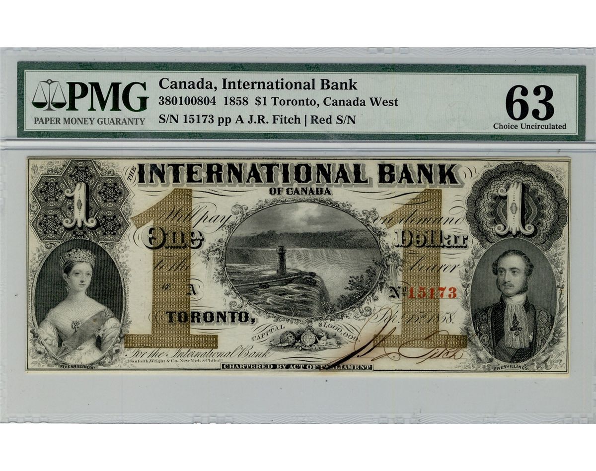 The International Bank of Canada; 1858 $1 #15173 CH-380-10-08-04 PMG CH UNC63.