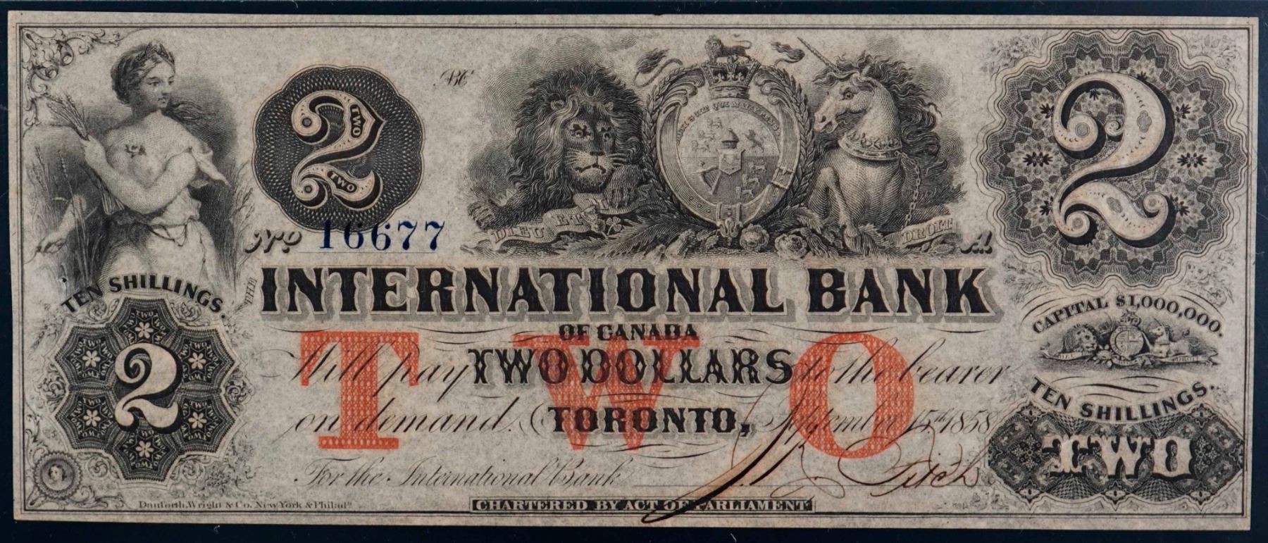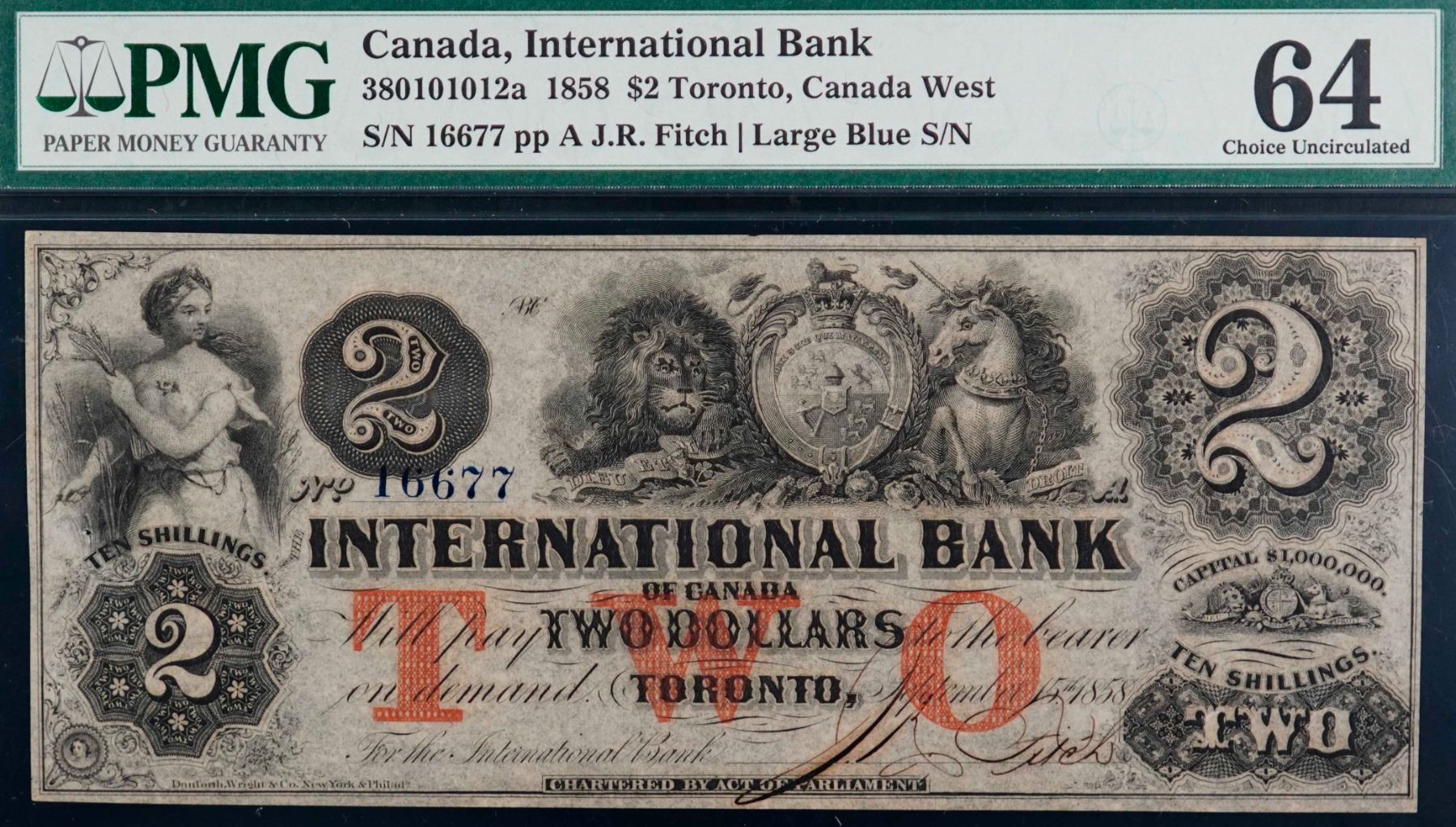 The International Bank of Canada; 1858 $2 #16677 CH-380-10-10-12a, PMG Very Choice Uncirculated-64.
