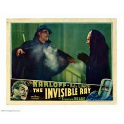 The Invisible Ray (Universal, 1936). Lobby Card (11" X 14"). King of the Monsters Boris Karloff stars in this sci-fi chiller as Janos Rukh, a scientist who once exposed to Radium X, begins a reign of terror! Early Universal horror cards are some of the most collectible lobbies in the hobby! Very Fine. Important notice: We expect to be auctioning lots at the rate of 200-250 per hour. Sometimes eBay Premier live bid software cannot keep up with that pace, so we strongly recommend that you place a realistic proxy bid now as insurance to avoid disappointment. Also please note that all Heritage/CAA lots purchased through eBay Premier carry a 20% Buyer's Premium.