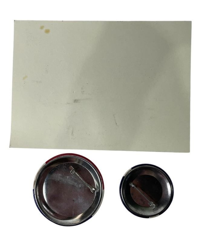 Original wedding invitation and Hoffa badges from the Martin Scorsese directed gangster film 'The Irishman' (2019), which follows Frank Sheeran (De Niro), a truck driver who becomes a hitman involved with mobster Russell Bufalino (Pesci) and his crime family before later working for the powerful Teamster Jimmy Hoffa (Pacino).