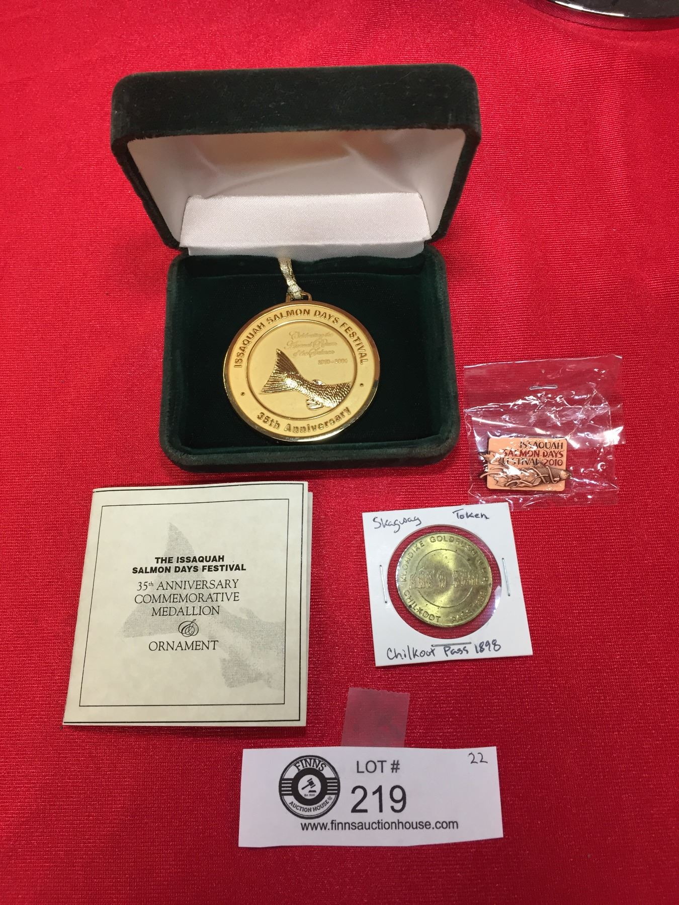 The Issaquah Slamon Days Festival Gold Plated Medallion Plus the Slamon Days Pin and the Segway Token. Chilcoot Pass 1898