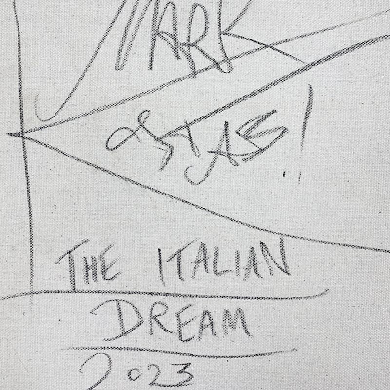 "The Italian Dream" is an original oil painting on canvas by Mark Kostabi, hand signed by the artist. This piece comes custom framed. Includes Certificate of Authenticity. Measures approx. 29.5" x 29.5" (frame), 19.5" x 19.5" (image).