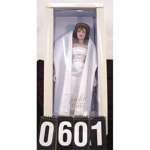 From the Franklin Mint is The Jackie Doll, made from fine porcelain. Doll is in perfect mint condition as well as her white clothing. Doll made in early 90's. Doll is 14 inches tall and box itself is 18" x 8" x 4" and weighs 1 lb 4 oz. [81]
