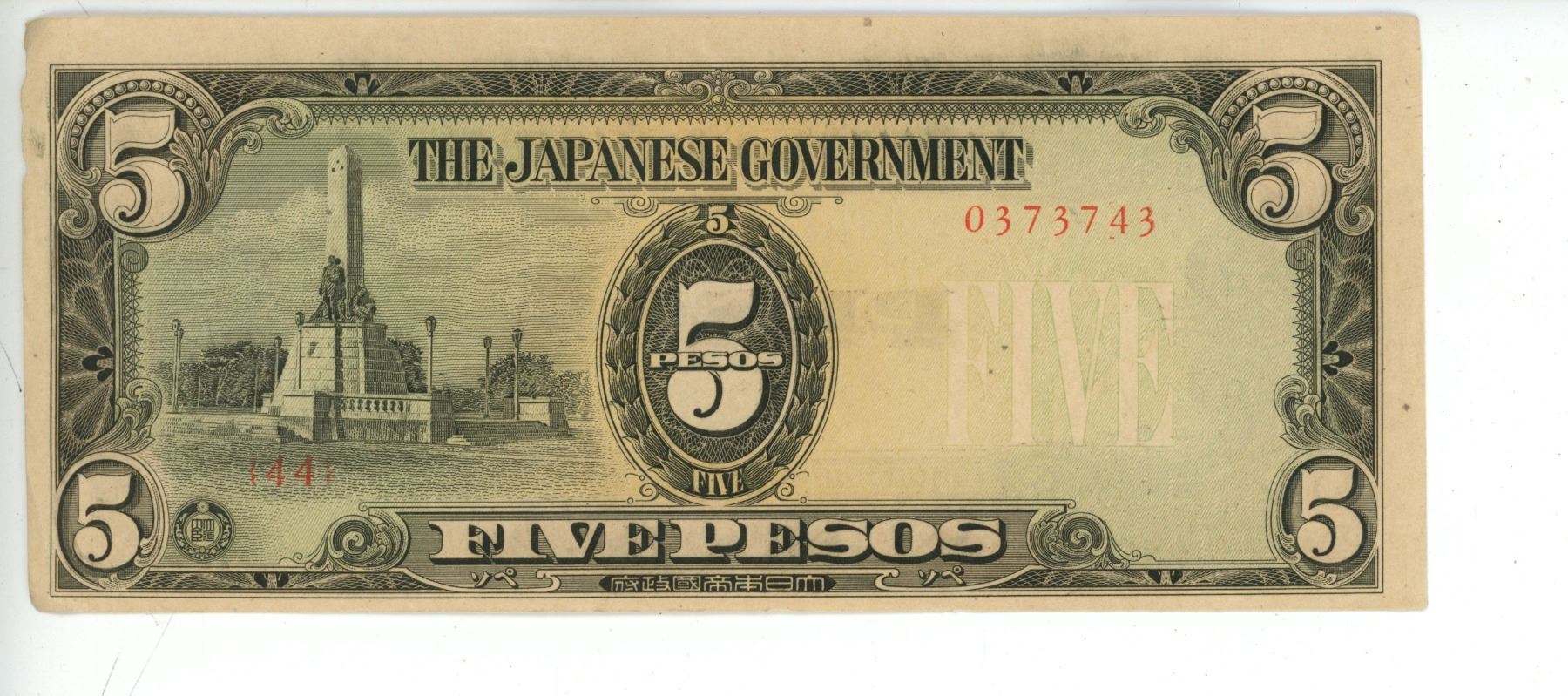 The Japanese Government 5 Peso bank note (WWII Military Invasion Currency)