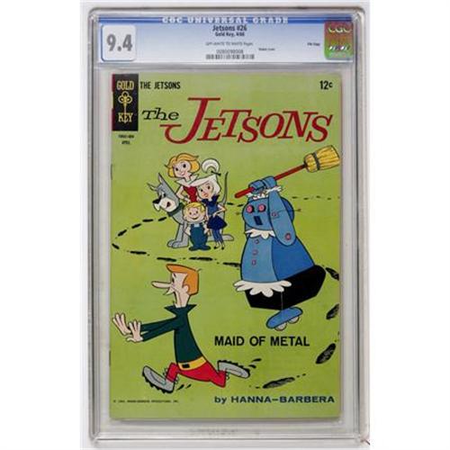 <B>The Jetsons #26 File Copy (Gold Key, 1968) CGC NM 9.4 Off-white to white pages.</B></I> Overstreet 2007 NM- 9.2 value = $80. CGC census 10/07: 4 in 9.4, 6 higher.<BR><BR><b>Shipping:</b> Comics - Slabbed (certified) (<a target="_blank" href="http://www.heritageauctions.com/common/shipping.php">view shipping information</a>)