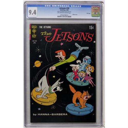 <B>The Jetsons #30 File Copy (Gold Key, 1969) CGC NM 9.4 Off-white to white pages.</B></I> CGC notes, "From the Random House Archives." Overstreet 2007 NM- 9.2 value = $80. CGC census 9/07: 8 in 9.4, 1 higher.<BR><BR><b>Shipping:</b> Comics - Slabbed (certified) (<a target="_blank" href="http://www.heritageauctions.com/common/shipping.php">view shipping information</a>)