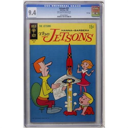 <B>The Jetsons #31 File Copy (Gold Key, 1969) CGC NM 9.4 Off-white to white pages.</B></I> CGC notes, "From the Random House Archives." Overstreet 2007 NM- 9.2 value = $80. CGC census 9/07: 4 in 9.4, 9 higher.<BR><BR><b>Shipping:</b> Comics - Slabbed (certified) (<a target="_blank" href="http://www.heritageauctions.com/common/shipping.php">view shipping information</a>)