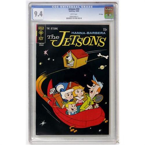 <B>The Jetsons #32 File Copy (Gold Key, 1969) CGC NM 9.4 White pages.</B></I> Overstreet 2007 NM- 9.2 value = $80. CGC census 10/07: 5 in 9.4, 8 higher.<BR><BR><b>Shipping:</b> Comics - Slabbed (certified) (<a target="_blank" href="http://www.heritageauctions.com/common/shipping.php">view shipping information</a>)