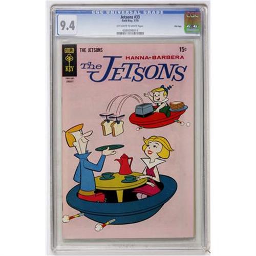 <B>The Jetsons #33 File Copy (Gold Key, 1970) CGC NM 9.4 Off-white to white pages.</B></I> Overstreet 2007 NM- 9.2 value = $80. CGC census 10/07: 6 in 9.4, 1 higher.<BR><BR><b>Shipping:</b> Comics - Slabbed (certified) (<a target="_blank" href="http://www.heritageauctions.com/common/shipping.php">view shipping information</a>)