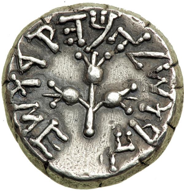 There are two distinct varieties, or classes, as they have been termed, of this most desirable shekel. Class I issues are those of traditional style and production found in extremely small numbers within hoards such as the Mount of Olives (1961) and those unearthed while excavations occurred at Masada (1963-1965). Probably the most famous of these is the Hunt specimen, found at Masada. This example is published in The Numismatic Legacy of the Jews (coin 94) and Wealth of the Ancient World. Another specimen (ex Reifenberg/Bromberg) was sold by Ira and Larry Goldberg at the Bromberg sale, Part II (10 XII 92), lot 389. There are very few of these class I shekels available, as most are impounded in public collections. Fewer than 15 exist of class I.