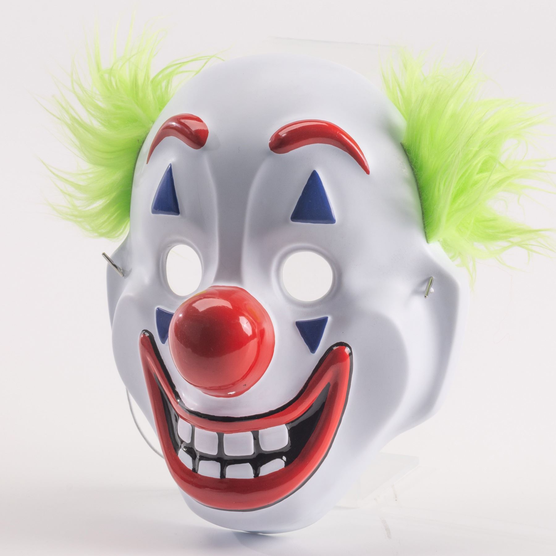 A clown mask from Todd Phillips' crime thriller the Joker. Forever alone in a crowd, failed comedian Arthur Fleck seeks connection as he walks the streets of Gotham City. Arthur wears two masks -- the one he paints for his day job as a clown, and the guise he projects in a futile attempt to feel like he's part of the world around him. Isolated, bullied and disregarded by society, Fleck begins a slow descent into madness as he transforms into the criminal mastermind known as the Joker.