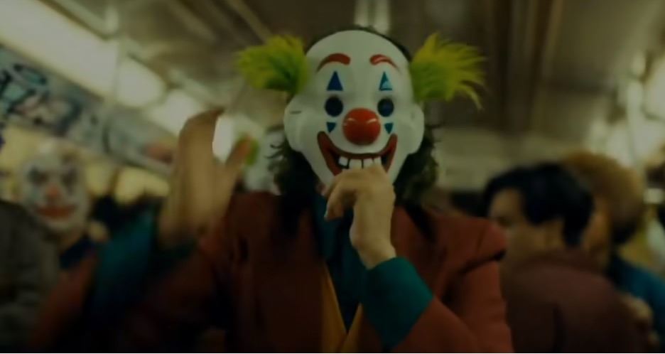 Masks like this (there are slight variations in some of the masks) were seen on the subway during the scene when Arthur Fleck (Joaquin Phoenix) is running away from police officers in New York City. The white, plastic mask features the face of a clown that has a red nose, red eyebrows, red lips, and green fabric made to look like the wearer has hair. The mask is in great condition and comes with a Certificate of Authenticity from Studio Auctions.