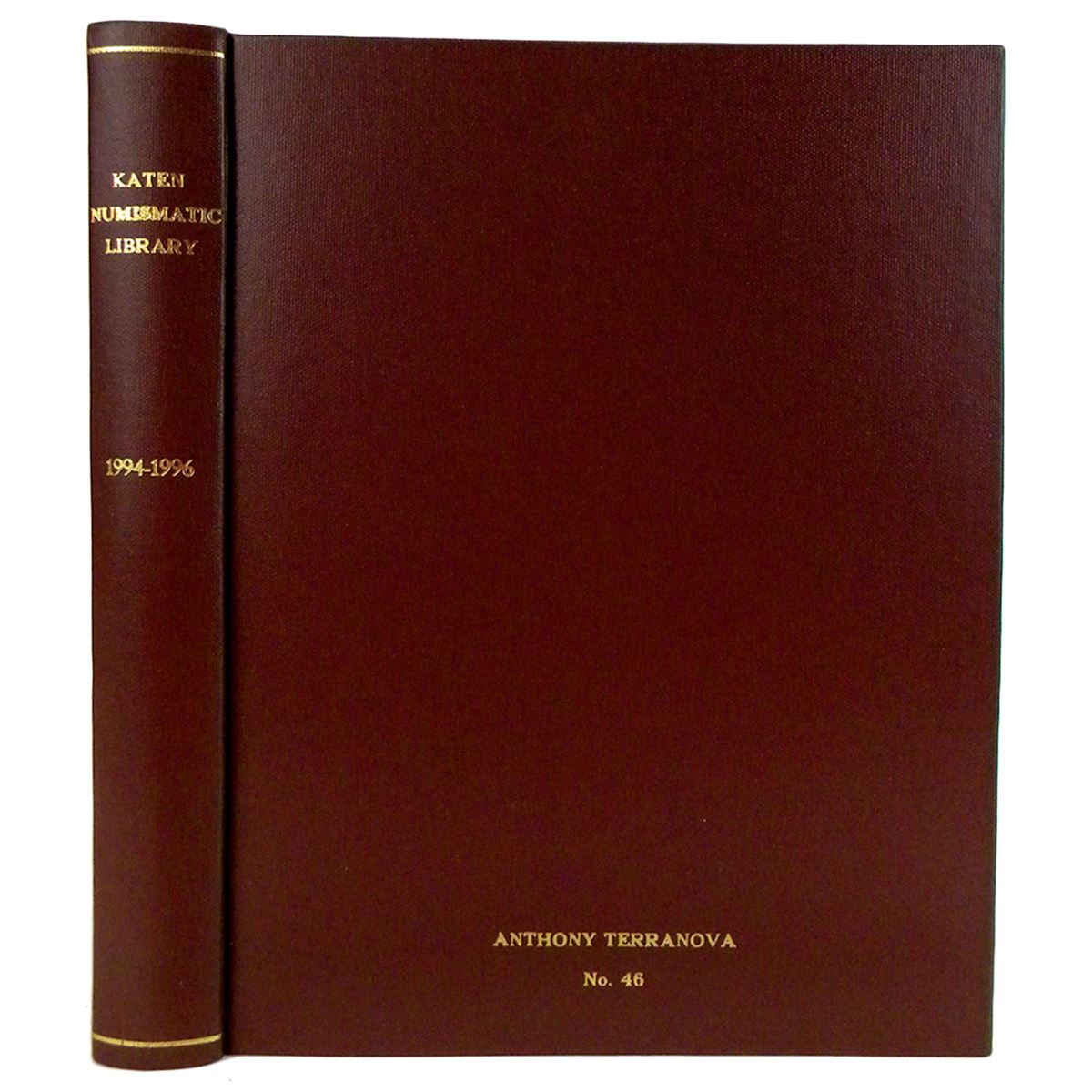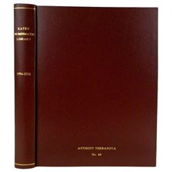 Katen, Frank and Laurese. 76TH-81ST PUBLIC AND MAIL BID AUCTION SALES. THE WORLD-WIDE NUMISMATIC LIBRARY OF FRANK AND LAURESE KATEN. PARTS 1-6. Baltimore etc., 1994-96. Six parts complete, bound in one volume. 4to, original crimson cloth, gilt; original printed card covers and prices realized lists bound in. Fine. No. 46 of the Special Collected Hardbound Edition, limited to 100 copies.