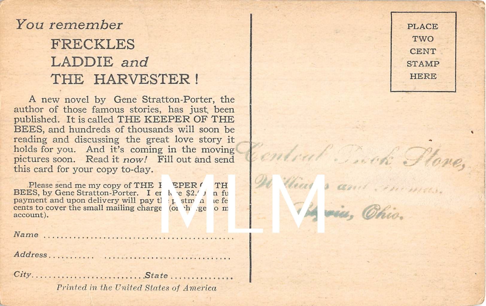 "The Keeper of the Bees" By Gene Stratton-port Novel Advertising Postcard