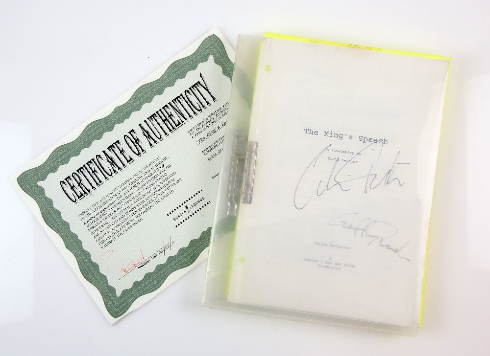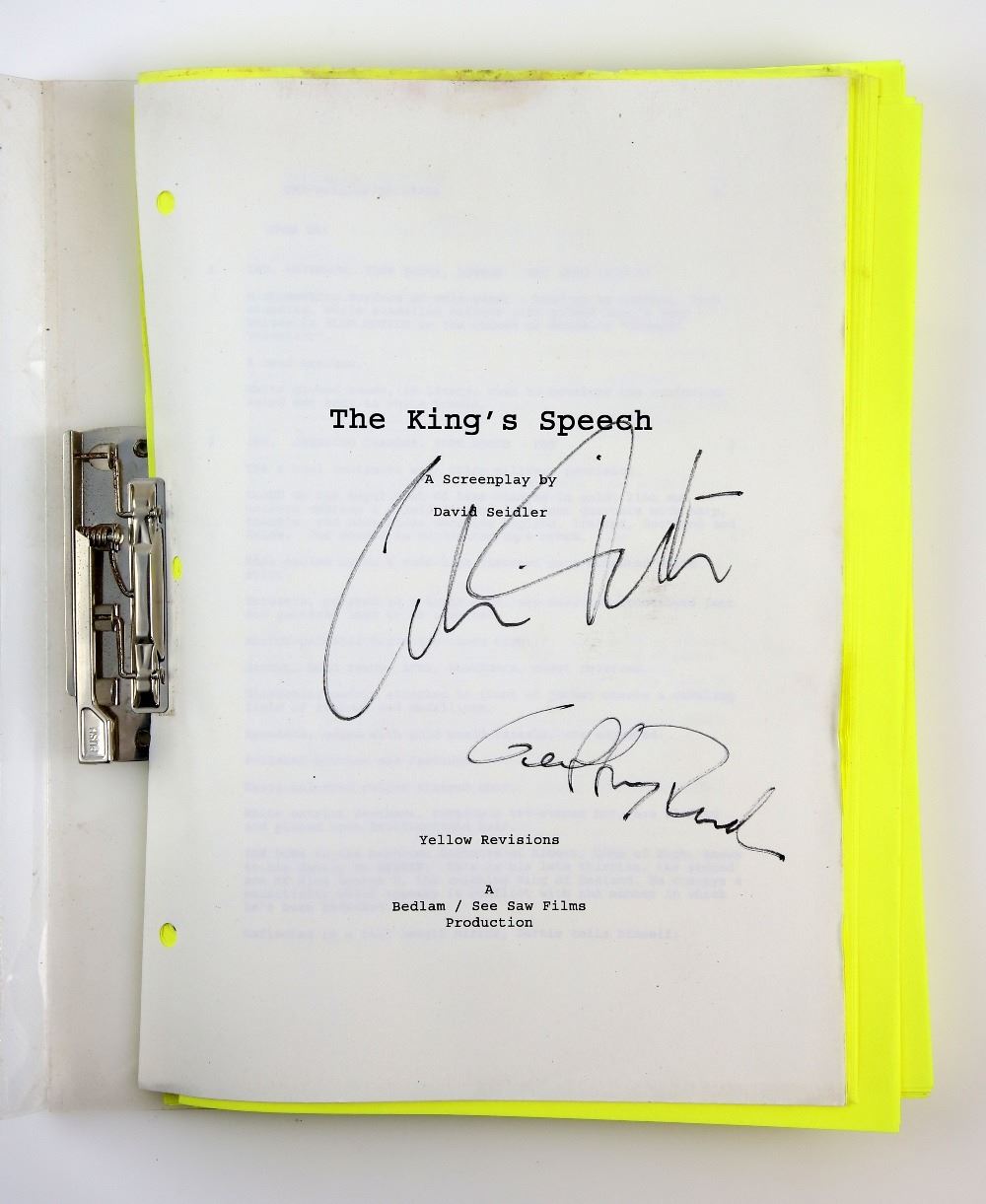 The King's Speech (2010) - Production used script (yellow revisions), signed by Colin Firth and Geoffrey Rush during close of production, with certificate of authenticity.
