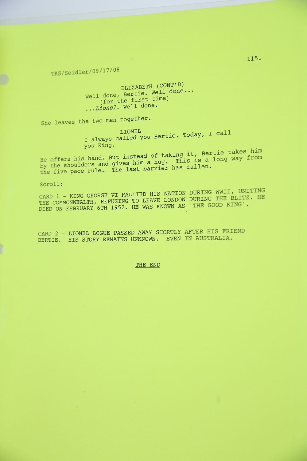 The King's Speech (2010) - Production used script (yellow revisions), signed by Colin Firth and Geof