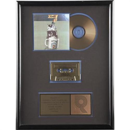 <B>The Kinks "Arthur" RIAA Gold CD Award.</B></I> A gold sales award presented to Record & Tape Traders to commemorate the sale of more that 500,000 cassette and CD copies of <I>Arthur.</B></I> Framed to an overall size of 13" x 17" and in Excellent condition. <BR><BR><b>Shipping:</b> Framed - with Glass, Small (<a target="_blank" href="http://www.heritageauctions.com/common/shipping.php">view shipping information</a>)