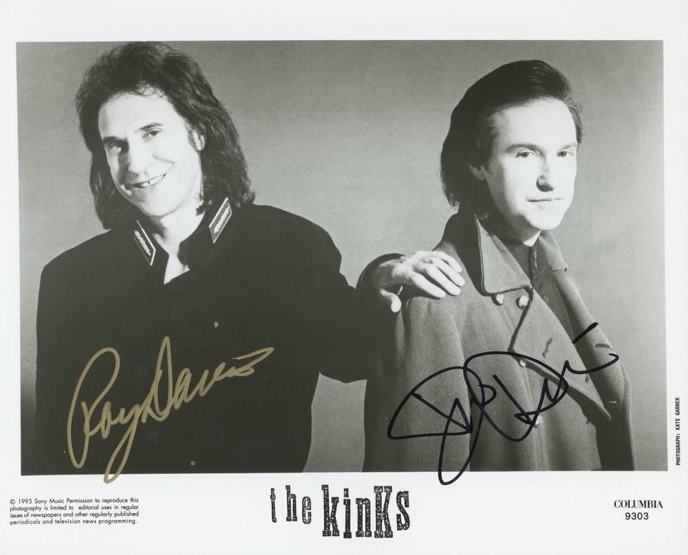 The Kinks signed photo autographed by Ray Davies and Dave Davies. 8x10 in. This item is a reprint of an original autograph.