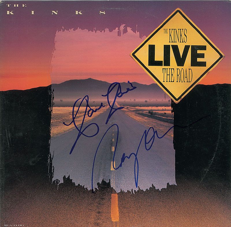 Live: The Road album signed on the front cover in blue felt tip by Ray and Dave Davies. In fine condition, with a mild album impression to front cover. The record is not included.