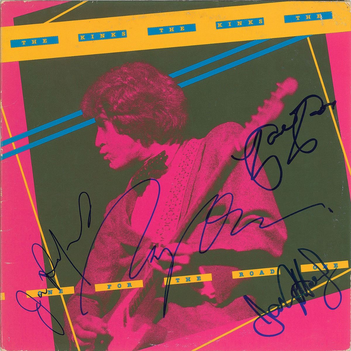 One for the Road album signed on the front cover in blue felt tip by Ray and Dave Davies, Jim Rodford, and Ian Gibbons. In fine condition. The record is not included.