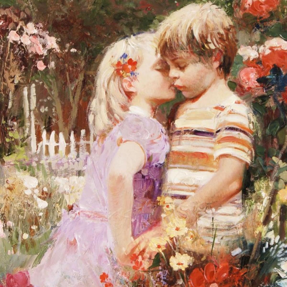 "The Kiss Revisited" is a limited edition giclee on stretched canvas that has been hand-embellished by Pino himself, AP Numbered and Hand signed by Pino (1939-2010). Includes Certificate of Authenticity. Measures approx. 24" x 32" (image).