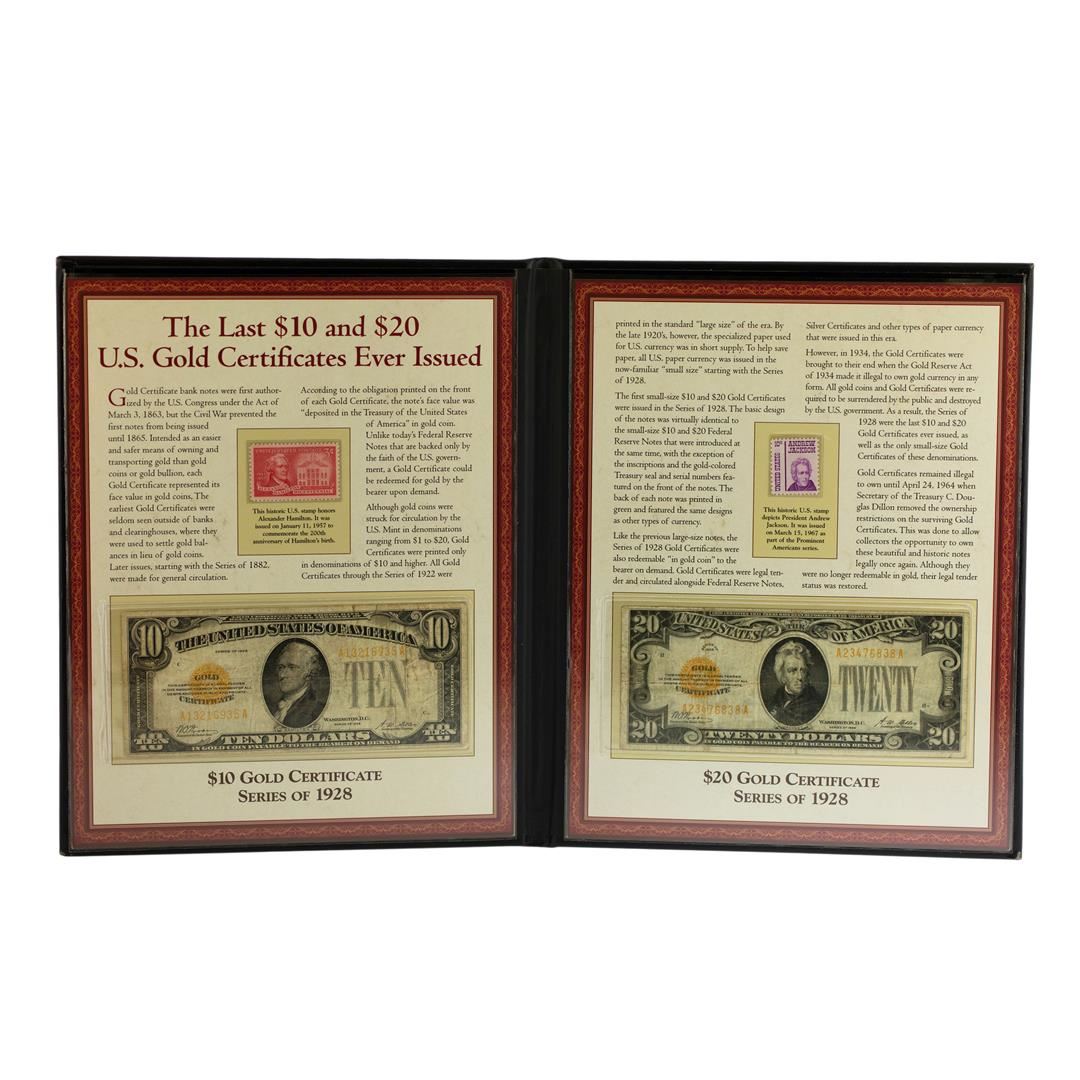 One The Last $10 & $20 Gold Certificate Notes in Book.