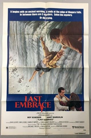 Last Embrace (United Artists, 1979). One Sheet. Starring: Roy Scheider and Janet Margolin. There are fold lines, creases and marks. Very Fine. (27" X 41").