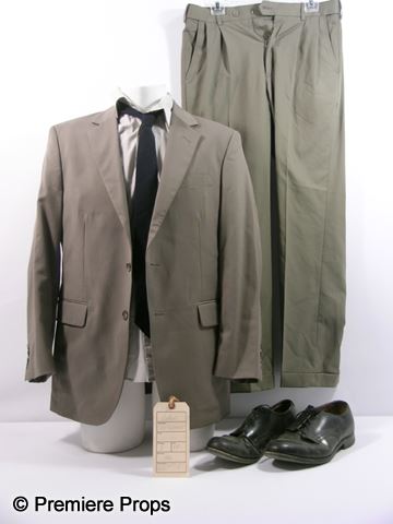 Caleb (Caleb Landry Jones) screen worn, taupe two button 'Arrow' suit jacket and pants, (size 38R and 32 x 32) light taupe long sleeve button front 'Oleg Cassini' dress shirt, (size 15 1/2 34x35) black thin neck tie, and black leather lace up the front 'Biltrite' shoes. (size 10 1/2) Includes wardrobe tag!