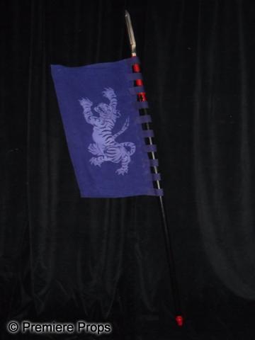 The Last Samurai (2003) - This is the original Samurai Tiger spear used by Tom Cruise as Captain Nathan Algren. During the battle in the fog, Algren steals the spear from a Samurai warrior and uses it to defend himself. The spear can also be seen at the very beginning of the movie, when Katsamoto has a vision of Samurai warriors trapping a white tiger. The spear is made of solid wood and is decorated with an ornate red resin piece. The spear tip is made of resin and is painted to look realistically like metal. Oversized item. Additional shipping charges required.