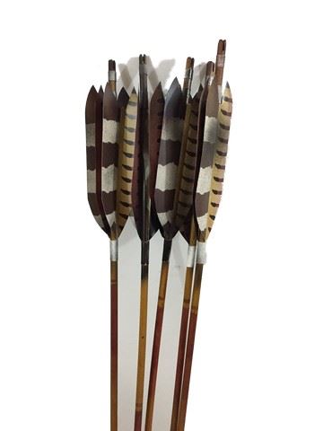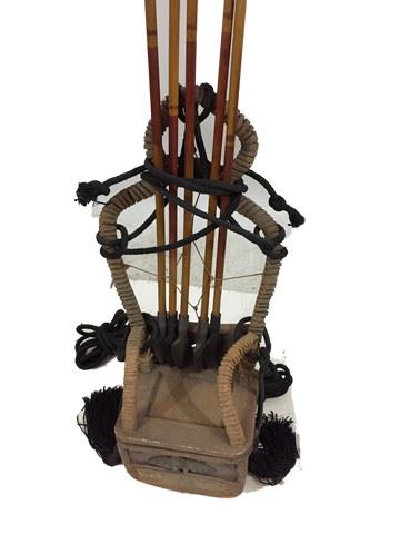 The Last Samurai (2003)- screen used arrows with quiver featured in the scene during the samurai village scene. The arrows (37") are made of bamboo with resin tips. The ornate quiver is made from painted styrofoam (14.75"). Quivers were made for the film by Global Effects.
