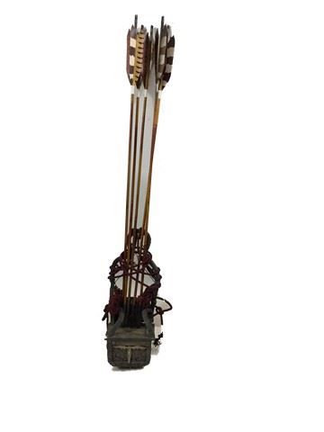The Last Samurai (2003) - screen used arrows with quiver featured in the scene during the samurai village scene. The arrows (37") are made of bamboo with resin tips. The ornate quiver is made from painted styrofoam (14.75"). Quivers were made for the film by Global Effects. This incredible memorabilia comes direct from the Debbie Reynold's archive collection. Debbie Reynolds and Todd Fisher purchased and acquired this amazing collection decades ago from the MGM auction, 20th Century Props auctions, Christie's auctions, Planet Hollywood and numerous additional auctions. Debbie Reynolds then opened Hollywood Central Props where many of these props and costumes were used in the making of feature films and television shows. This auction also marks the beginning of a long-term collaboration with The Debbie Reynolds’ Archives and her son Todd Fisher with a collection of props, costumes and photos including an ensemble from CHOCOLAT, ROMEO AND JULIET, MISSISSIPPI, V FOR VENDETTA, THE PATRIOT, THE LAST SAMURAI and more!