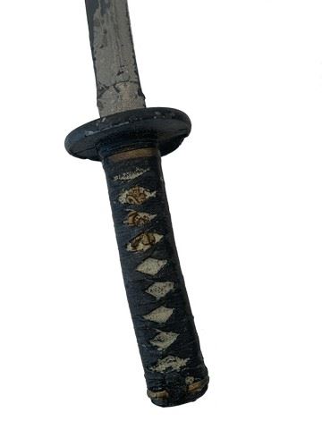 The Last Samurai - Screen used, hard rubber, painted tanto knife with a gold painted samurai figure inside the grip. Painted to look distressed. (~21" long). This incredible memorabilia comes direct from the Debbie Reynold's archive collection. Debbie Reynolds and Todd Fisher purchased and acquired this amazing collection decades ago from the MGM auction, 20th Century Props auctions, Christie's auctions, Planet Hollywood and numerous additional auctions. Debbie Reynolds then opened Hollywood Central Props where many of these props and costumes were used in the making of feature films and television shows. This auction also marks the beginning of a long-term collaboration with The Debbie Reynolds’ Archives and her son Todd Fisher with a collection of props, costumes and photos including an ensemble from CHOCOLAT, ROMEO AND JULIET, MISSISSIPPI, V FOR VENDETTA, THE PATRIOT, THE LAST SAMURAI and more!