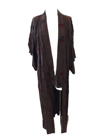 The Last Samurai - Villager's brown kimono style robe floor length, with red and blue flower design, slightly tattered. This amazing memorabilia comes direct from the Debbie Reynold's archive collection. The Debbie Reynold's archive collection was formed by Debbie Reynolds and her son Todd Fisher who collected and preserved some of the best of Hollywood's costumes and props. Beginning their collection decades ago by purchasing collections from the MGM auction, 20th Century Props auctions, Christie's auctions, Planet Hollywood and numerous additional auctions.
