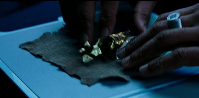 Screen used on the airplane by Kaulder (Vin Diesel) weather runes with prop wood pieces and prop stone on the inside. In the film these light up with special effects to control the thunderstorm. Runes are a written alphabet used by the Germanic peoples in northern Europe until around the thirteenth century when they slowly phased out of use. The word rune is believed to be derived from an Old Germanic word rúna meaning whisper, mystery or secret [Elliott, 1959; Melville, 2003; Thorsson, 1984]. The current belief as to why the name of a language was based off a word meaning ‘secret’ is because not many people were educated in the meanings of runes and so runes were seen as a ‘secret language’ that was usually associated with magic by those who could not understand them [Elliott, 1957; Elliott, 1959; Melville, 2003; Rix, 2011].