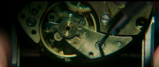 "Merona" men's black with copper colored face border men's stainless steel and metal watch. Likely used for the scene where Kaulder (Vin Diesel) is fixing watches at his desk.